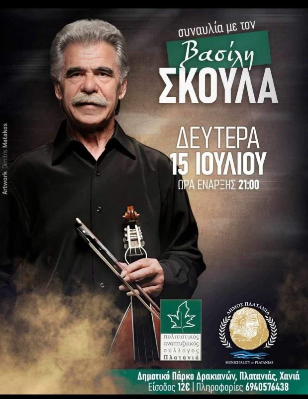 Μια ξεχωριστή συναυλία με τον μοναδικό Βασίλη Σκουλά θα πραγματοποιηθεί την Δευτέρα 15 Ιουλίου στο ειδυλλιακό Δημοτικό Πάρκο Δρακιανών, στις 21:00 μ.μ.