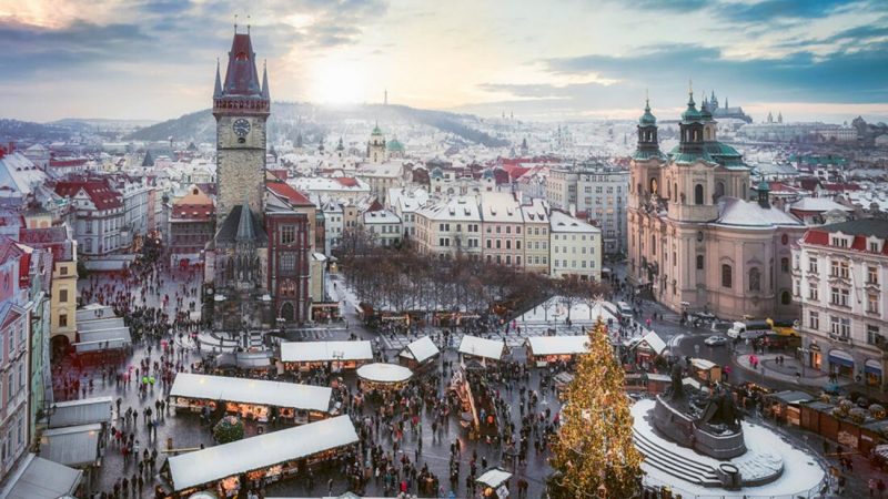 Η εκπληκτική γοτθική αρχιτεκτονική της Πράγας προσφέρει ένα δραματικό σκηνικό για τις χριστουγεννιάτικες εκδηλώσεις της. Στους πρόποδες της εκκλησίας της Παναγίας Τυν, η χριστουγεννιάτικη αγορά της Παλιάς Πόλης πουλάει τσεχικά δώρα, είδη για το γέμισμα των καλτσών και λιχουδιές στους χιλιάδες αγοραστές που την επισκέπτονται κάθε Δεκέμβριο. Οι τραγουδιστές των κάλαντων ερμηνεύουν αγαπημένα εποχιακά τραγούδια, ενώ ένα εντυπωσιακά ψηλό και περίτεχνα διακοσμημένο χριστουγεννιάτικο δέντρο ενισχύει τη χαρούμενη ατμόσφαιρα.
