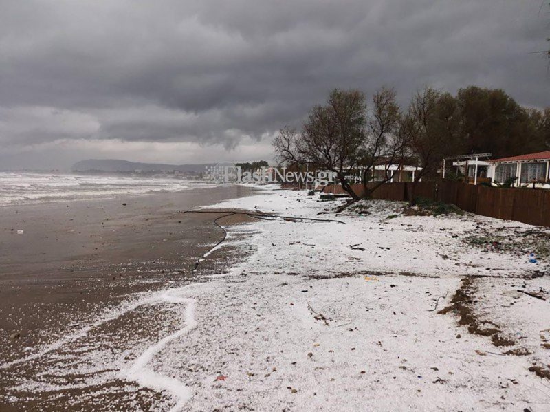 Το χαλάζι μάλιστα που έριξε ήταν τόσο και σε τέτοια συχνότητα που κατάφερε να το στρώσει κανονικά ακόμα και παραλιακά.