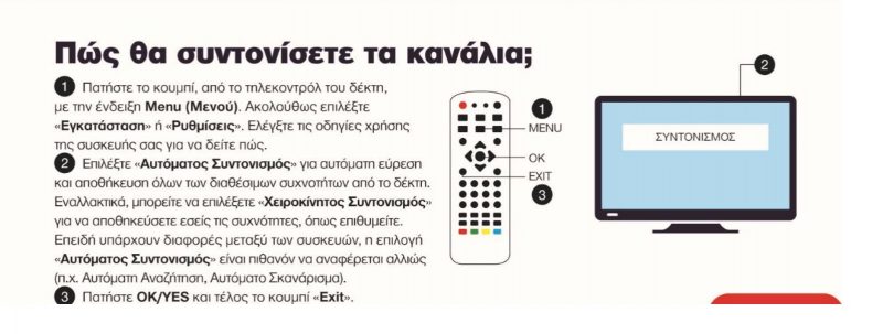 Ακολουθούν οδηγίες, όπου παρέχονται χρήσιμες πληροφορίες σχετικά με τη διαδικασία που πρέπει να ακολουθηθεί για τον επανασυντονισμό των τηλεοράσεων.