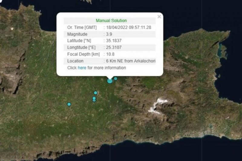 Ο σεισμός σημειώθηκε στις στις 16:18 το απόγευμα της Κυριακής. Σύμφωνα με το Γεωδυναμικό Ινστιτούτο του Εθνικού Αστεροσκοπείου Αθηνών ο νέος μετασεισμός ήταν της τάξεως των 3,9 ρίχτερ και σημειώθηκε 10,8 χιλιόμετρα Βόρεια – Βορειοανατολικά του Αρκαλοχωρίου στο γνωστό ρήγμα που δίνει τους απανωτούς σεισμούς. Το εστιακό βάθος ήταν στα 6 χιλιόμετρα.
