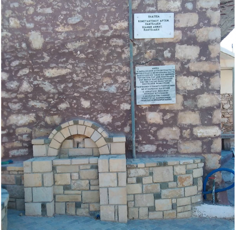 Η δεύτερη επίσης πετρόκτιστη βρύσση βρίσκεται στην ευθεία του ίδιου δρόμου προς το κέντρο του χωριού απάναντι από τη μεγάλη πλατεία των Ηρώων στην πλατεία Αρτεμίου και Κωνσταντίνου Παντελάκη και χρηματοδοτήθηκε από τον χωριανό μας Ελευθέριο Δημητρίου Παντελάκη στη μνήμη των γονιών και των κατά σάρκα συγγενών του.
