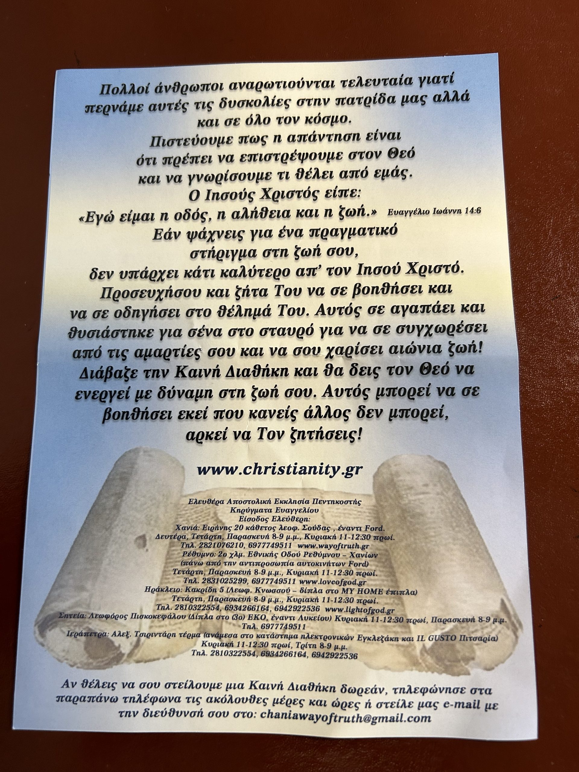Εκ της Ιεράς Μητροπόλεως Κισάμου και Σελίνου ανακοινώνονται τα εξής: Τις τελευταίες ημέρες στην Κίσαμο και την ευρύτερη περιοχή κινούνται οργανωμένα κλιμάκια – ομάδες Πεντηκοστιανών, οι οποίοι διανέμουν φυλλάδια, καλώντας όποιον επιθυμεί να επικοινωνήσει μαζί τους. Οι ομάδες αυτές ανήκουν στην λεγόμενη «Ελευθέρα Αποστολική Εκκλησία της Πεντηκοστής», η οποία ιδρύθηκε το 1965 από τον ιατρό και «ποιμένα» της συνάθροισης των Πεντηκοστιανών στην Αθήνα, Λεωνίδα Φέγγο. Η αίρεση του Πεντηκοστιανισμού ξεκίνησε ως αντίδραση προς τον Προτεσταντισμό και εμφανίστηκε για πρώτη φορά στην Αμερική και την Βρετανία μεταξύ των ετών 1904 και 1910. Μερικές, από τις πολλές κακοδοξίες των Πεντηκοστιανών, είναι οι εξής: