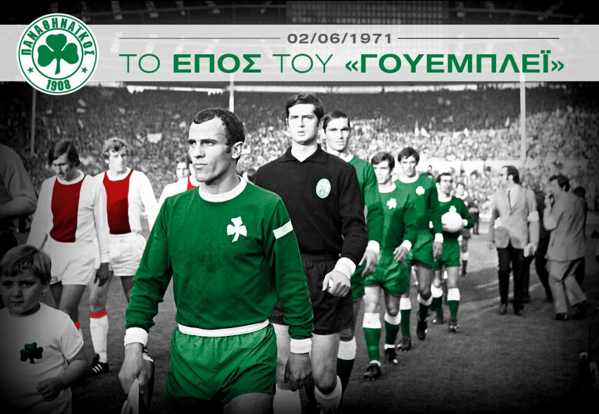 Σαν σήμερα πριν 49 χρόνια, στις 2 Ιουνίου του 1971, ο Παναθηναϊκός αγωνίστηκε στον τελικό του Κυπέλλου Πρωταθλητριών στο Γουέμπλεϊ, όπου και ηττήθηκε με 2-0 από τον Άγιαξ του Ρίνους Μίχελς, του Γιόχαν Κρόιφ και των υπόλοιπων αστέρων της εποχής. Ένα επίτευγμα που δεν έχει επαναληφθεί μετά από τόσα χρόνια και που καταδεικνύει την διαχρονική σημασία που έχει.