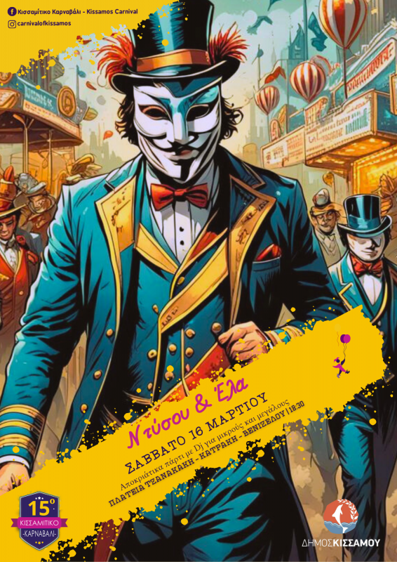 Στην τελική ευθεία μπαίνει το 15ο Κισσαμίτικο Καρναβάλι και προσκαλεί μικρούς και μεγάλους να ξεφαντώσουν και να απολαύσουν στιγμές χαράς και κεφιού.