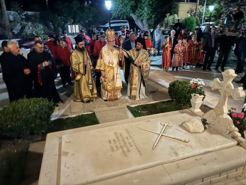 Τρισάγιο, επίσης, τελέστηκε στον τάφο του αοιδίμου Μητροπολίτου Κισάμου και Σελίνου κυρού Ειρηναίου, επιστρέφοντας από την λιτανεία.