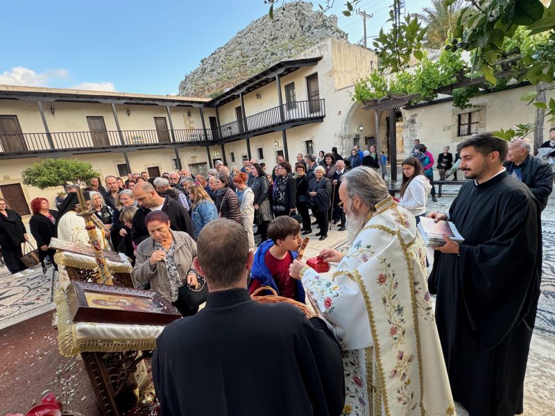 Τον Εσπερινό της Αγάπης ο Σεβ. Μητροπολίτης Κισάμου και Σελίνου κ. Αμφιλόχιος τέλεσε στην Ιερά Πατριαρχική και Σταυροπηγιακή Μονή Γωνιάς, με την συμμετοχή των Ιερέων της Ανατολικής Κισάμου. Ο προαύλιος χώρος της Μονής, όπου τελέστηκε και ο Εσπερινός της Αγάπης, κατακλύστηκε από πλήθος προσκυνητών, τόσο εκ της ευρύτερης περιοχής, όσο και αλλαχού, εκ Ρεθύμνου, Ηρακλείου, ως και αρκετοί επισκέπτες των ημερών, μεταξύ των οποίων και ομάδα συνέδρων εκ Γερμανίας, από την Ορθόδοξο Ακαδημία Κρήτης.