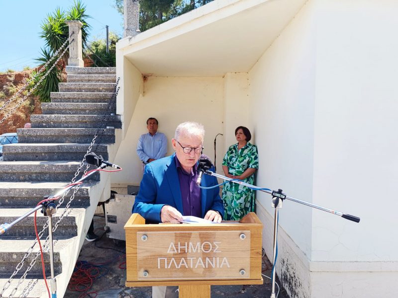 Η κεντρική εκδήλωση του Δήμου Πλατανιά πραγματοποιήθηκε στο Μνημείο Κερίτη στον Αλικιανό, όπου στον χαιρετισμό του ο Δήμαρχος Πλατανιά κ. Γιάννης Μαλανδράκης τόνισε μεταξύ άλλων “ ….ότι η αποκατάσταση της ιστορικής γέφυρας του Κερίτη θα είναι η ύψιστη απόδοση τιμής στους εκτελεσθέντες της περιοχής, για την οποία, ο Δήμος Πλατανιά μεριμνά με ενέργειές του από την πρώτη στιγμή και ζήτησε από την Πολιτεία να αναλάβει την υποχρέωση που της αναλογεί για την επίσπευση των εργασιών αναστήλωσης…”