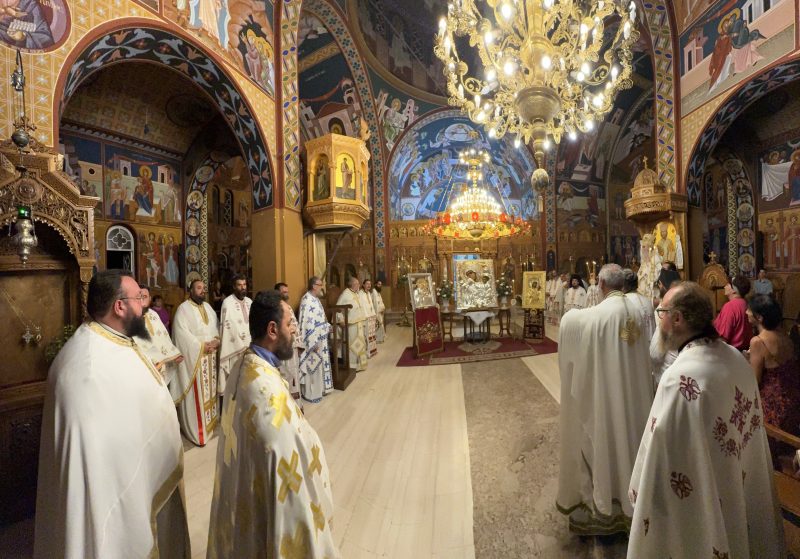 Προ της Απολύσεως της Ιεράς Αγρυπνίας ο Σεβ. Μητροπολίτης Κισάμου και Σελίνου κ. Αμφιλόχιος ευχαρίστησε τον Πρωτοσύγκελλο της Ι.Μητροπόλεως, Παν. Αρχ. π. Αγαθάγγελο, «δια την οργάνωση και συντονισμό», τους Προϊσταμένους του Ι. Μητροπολιτικού Ναού και του Ι. Καθεδρικού Ναού του Αγ. Σπυρίδωνος ως και τους Κληρικούς της Ι. Μητροπόλεως, τον Υφυπουργό Εθνικής Αμύνης κ. Ιωάννη Κεφαλογιάννη «δια την φροντίδα ελεύσεως της Στρατιωτικής Μουσικής Μπάντας και του Τιμητικού Αγήματος» και, απευθυνόμενος στο πλήθος των πιστών που είχαν κατακλύσει τον Ι. Μητροπολιτικό Ναό, πολλοί εκ των οποίων μετείχαν της Θείας Κοινωνίας, σημείωσε: «Πρόγευση της μεγάλης εορτής της Σεπτής Κοιμήσεως και της εις Ουρανούς μεταστάσεως της Θεοτόκου Μαρίας, η πνευματική χαρά, το ιερό – μυστικό αυτό πανηγύρι που, τις ημέρες αυτές ζούμε και χαιρόμαστε, με κορύφωση την σημερινή Ιερά Θεομητορική Αγρυπνία, ενώπιον των Χαριτοβρύτων Εικόνων της Παναγίας μας. Η μεγάλη και γλυκιά Μάνα του κόσμου καλεί όλους μας, και τώρα και πάντοτε, να καθρεπτιστούμε στο Πανάχραντο Πρόσωπο Της και να ζήσουμε, να ζούμε, την πίστη μας και την ζωή μας, με το μέτρο της δικής Της ζωής. Ας γίνει το σημερινό μας προσκύνημα, στις τρεις Χαριτόβρυτες και περίπυστες Εικόνες Της, απαρχή για ένα νέο πνευματικό ξεκίνημα, μια νέα σχέση ζωής, με την Πηγή της Ζωής, την Θεοτόκο Μαρία», κατέληξε ο Σεβ. Μητροπολίτης Κισάμου και Σελίνου κ. Αμφιλόχιος, ευχόμενος «Καλή Παναγιά». Άμα το πέρας της Αγρυπνίας ακολούθησε, στο παρακείμενο Ενοριακό Κέντρο του Ι.Μητροπολιτικού Ναού, λιτό δείπνο δια όλους τους Ιερείς που μετείχαν στην Αγρυπνία, οι Αρχιερατικοί Επίτροποι ως και αντιπροσωπείες και από τις τρεις (3) Αρχιερατικές Περιφέρειες της Ιεράς Μητροπόλεως, όπου ο Σεβ. Ποιμενάρχης κ. Αμφιλόχιος είχε την ευκαιρία ενός γόνιμου διαλόγου, ευχαριστώντας τους «δια την πολύτιμη διακονία στην τοπική Εκκλησία».