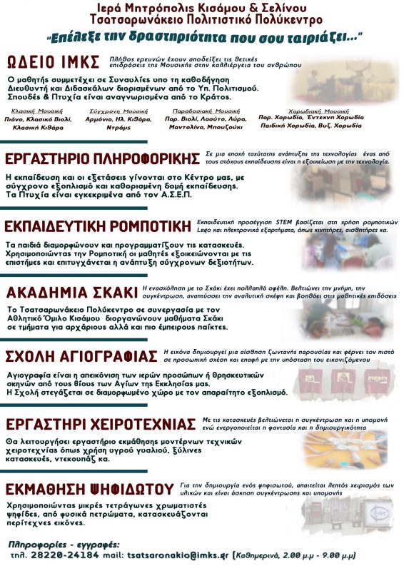 Τηλέφωνο: 28220-24184, e–mail: tsatsaronakio@imks.gr