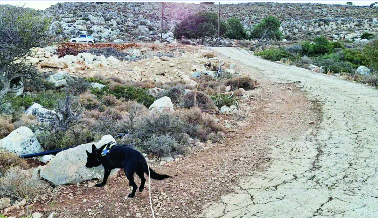 Στην περιοχή βρέθηκαν ο χειριστής της “Νέση”, Γιώργος Χωραφάς, μαζί με τον θηροφύλακα Κώστα Κριστωτάκη, οι οποίοι ενημερώθηκαν για το περιστατικό δηλητηρίασης των δύο δεσποζόμενων σκυλιών με καθυστέρηση αρκετών ημερών. Ωστόσο, προγραμματίστηκε και διεξήχθη άμεσα έρευνα με τον ειδικά εκπαιδευμένο σκύλο “Νέση”. Στη διάρκεια της αυτοψίας, η “Νέση” εντόπισε το ένα από τα δύο νεκρά σκυλιά και ένα νεκρό κουνάβι, με ενδείξεις τοξικών ουσιών και τα δύο.