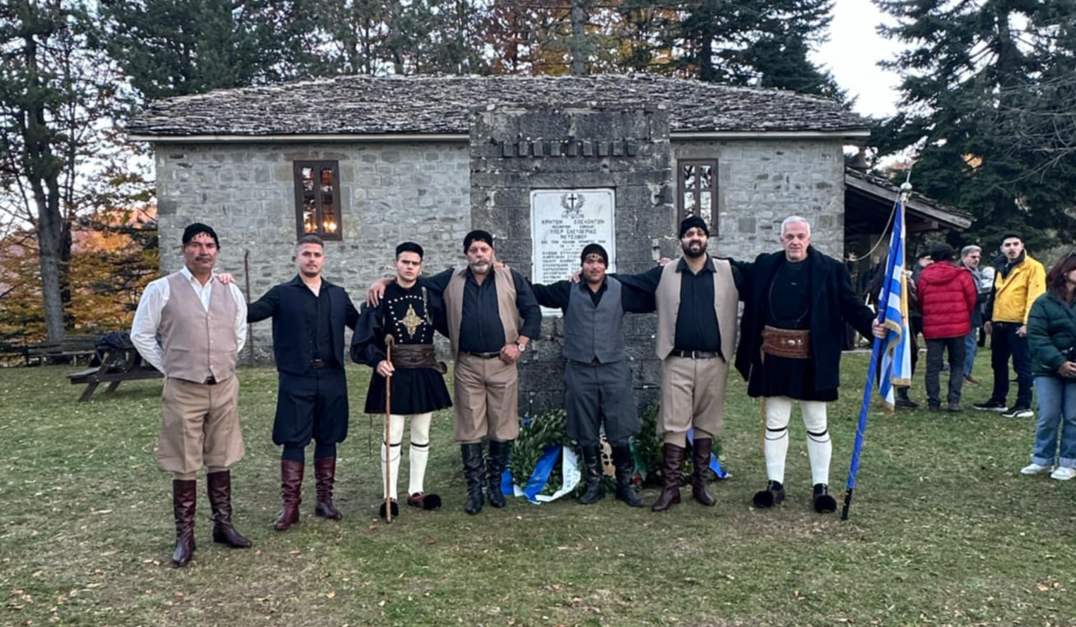 Το μεσημέρι του Σαββάτου 2 Νοεμβρίου επισκεφθήκαμε τον λόφο του Προφήτη Ηλία όπου σε μια στήλη αναφέρονται τα ονόματα 9 Κρητών νεκρών στη μάχη του Μετσόβου. Τρισάγιο, ρίγη συγκίνησης από μία Μετσοβίτισσα που ερμήνευσε το μοιρολόι των γυναικών Μετσόβου προς τους νεκρούς ελευθερωτές. Παρόμοια συγκίνηση και από τον Πρόεδρο του Συλλόγου Βρακοφόρων Δυτικής Κρήτης Χαράλαμπο Σιδεράκη που ερμήνευσε το ακόλουθο ριζίτικο, παραγγελιά του τραυματία στρατιώτη προς τη μάνα του.