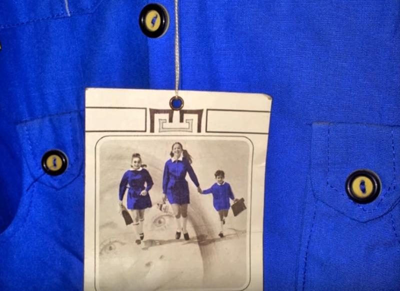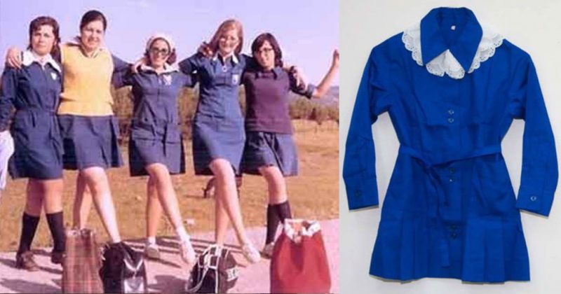 Τα κορίτσια φορούσαν μπλε ποδιά σε δύο αποχρώσεις (το απλό ή το σκούρο μπλε), με λευκό γιακά και λευκές κάλτσες που έφθαναν το πολύ ως κάτω απ’ το γόνατο. Το καλσόν κάθε τύπου, απαγορευόταν αυστηρά. Η στολή στα αγόρια, που κατά το νόμο περιελάμβανε και καπέλο, είχε καταργηθεί στην πράξη από την δεκαετία του ’60 και δεν εφαρμοζόταν πλέον. Το καπέλο των αγοριών ήταν μάλλινο και ονομαζόταν «κουκουβάγια», διότι είχε κεντημένο πάνω του ένα κεφάλι κουκουβάγιας που θεωρείται το σύμβολο της σοφίας. Η ποδιά για τα κορίτσια αφορούσε όλες τις βαθμίδες της εκπαίδευσης, από το νηπιαγωγείο μέχρι το τέλος του εξαταξίου γυμνασίου.