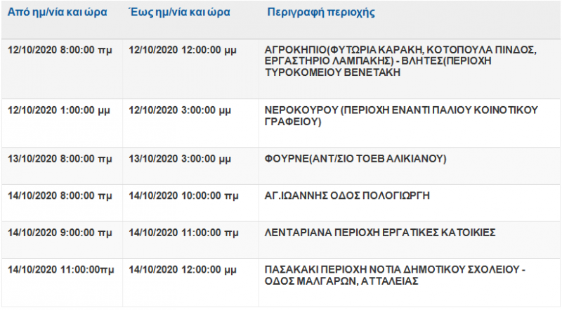 Αν οι εργασίες τελειώσουν νωρίτερα, το ρεύμα θα ξαναδοθεί πριν από τον χρόνο λήξης της διακοπής που αναφέρεται πιο κάτω.