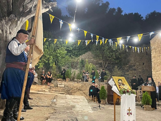 Την εκδήλωση έκλεισε ο Σεβ. Μητροπολίτης Κισάμου και Σελίνου κ. Αμφιλόχιος, ο οποίος, με λόγους θερμούς χαιρέτισε και ευχαρίστησε τόσο τους συνδιοργανωτές, όσο και τον εκλεκτό ομιλητή, ως και όλους τους συντελεστές και παρευρισκομένους, τον Αρχ. Επίτροπο Ανατολικής Κισάμου Αιδ. Πρωτ. π. Ιωάννη Γουμενάκη, τους Ιερείς της περιοχής ως και τους Συλλόγους δια τις προσφορές των καρπών της γης. Τον Καθηγούμενο π. Ιερεμία δια την προσφορά της Εικόνας ως και τον Πολιτιστικό Σύλλογο «Ρόδο», σημειώνοντας: «Προσκυνητές σήμερα σε αυτό τον τόπο, τον ιερό, τον άγιο που μαρτυρεί την ιστορία, τον πολιτισμό, την ταυτότητα μας, φωτίζοντας και σηματοδοτώντας το παρελθόν και το παρόν. Διερωτώμαι, άραγε και το μέλλον; Τέτοιου είδους εορτασμοί αποκτούν νόημα και ουσία όταν αποτελούν νέο εγερτήριο θούριο, αφυπνίζουν συνειδήσεις και δεν εγκλωβίζονται σε στείρες επετειακές εκδηλώσεις. Εάν θρηνούμε και όντως θρηνούμε τις μέρες αυτές πάνω από τα αποκαΐδια της πύρινης λαίλαπας που έκαψε όχι μόνο τις περιουσίες, τον βιό, εκατοντάδων συνανθρώπων μας, αλλά τα όνειρα και τις ζωές τους, ας μην επιτρέψουμε, εξ΄ αιτίας του ωχαδερφισμού και της ραθυμίας μας, να θρηνήσουμε και πάνω από τα αποκαΐδια του πολιτισμού, της ιστορίας και της ταυτότητας μας», κατέληξε ο Σεβ. Ποιμενάρχης κ. Αμφιλόχιος, ευχόμενος «Καλή Παναγιά».