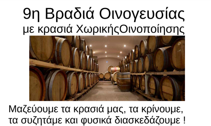 Οι φίλοι του κρασιού καλούνται για ΈΝΑΤΗ χρονιά να φέρουν το κρασί τους σε ένα διαγωνισμό στο κλίμα του …καλού κρασιού.