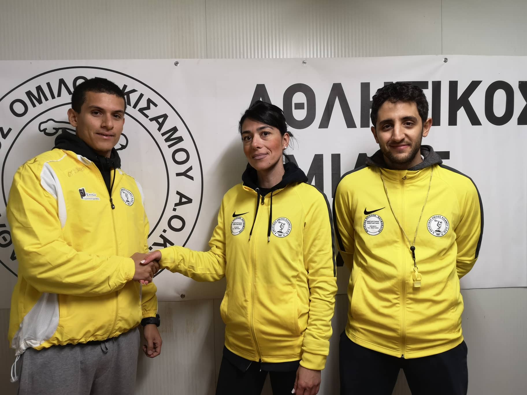 Στην φωτογραφία η Άννα Κουρτάκη, ανάμεσα στους προπονητές του τμήματος στίβου του Αθλητικού Ομίλου Κισάμου Γιώργο Μαρκετάκη και Λάμπρο Φραντζεσκάκη.