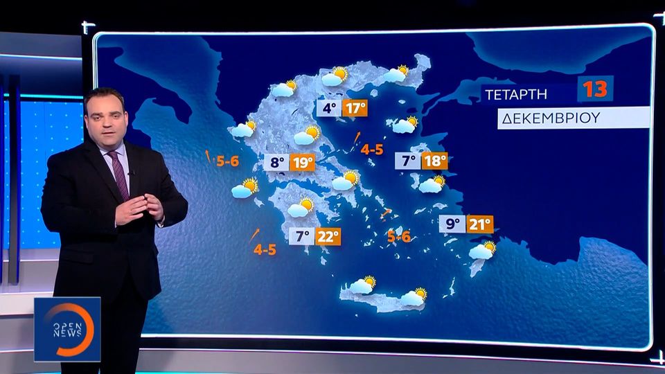 Καιρός: Σχεδόν αίθριος με λίγες νεφώσεις παροδικά αυξημένες αρχικά στα νησιά του ανατολικού Αιγαίου και από το βράδυ στα Δωδεκάνησα.