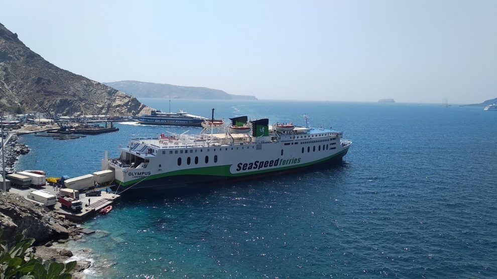 Στο λιμάνι της Σαντορίνης παραμένει από τις 8:45 το πρωί, το πλοίο Olympus της SeaSpeed Ferries που απέπλευσε το βράδυ της Τετάρτης από τον Πειραιά με τελικό προορισμό το Ρέθυμνο.