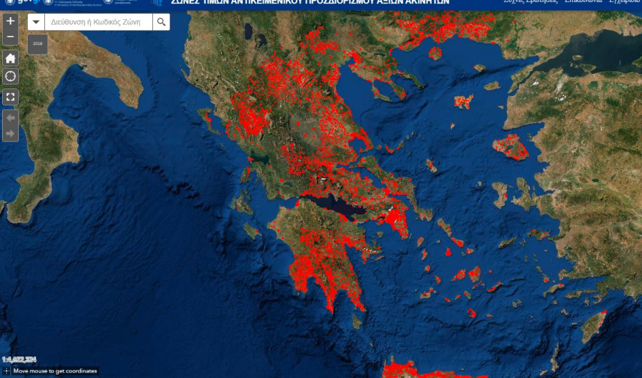 Μέσω της εφαρμογής, η οποία δημιουργήθηκε με τη συνεργασία του Υπουργείου Οικονομικών και του Υπουργείου Ψηφιακής Διακυβέρνησης, και ειδικότερα των Γενικών Γραμματέων Οικονομικής Πολιτικής κ. Χρήστου Τριαντόπουλου και Πληροφοριακών Συστημάτων Δημόσιας Διοίκησης κ. Δημοσθένη Αναγνωστόπουλου, αποτυπώνονται – για πρώτη φορά – όλες οι ζώνες του συστήματος αντικειμενικού προσδιορισμού αξιών ακινήτων σε έναν ψηφιακό, δορυφορικό χάρτη της Ελλάδας.