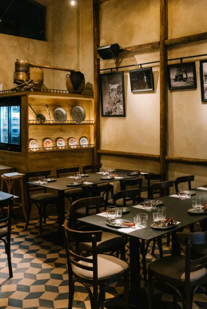 Πρόκειται για ένα μοντέρνο καφενείο. Ο χώρος που έχει σχεδιάσει το γραφείο Nine Design παραπέμπει, με το ξύλο και τους οντάδες, σε παλιό κρητικό σπίτι. Στην ανοιχτή του κουζίνα μπαίνει κάθε μέρα ζυγούρι στην αντικριστιέρα, τα κρέατα τα φέρνουν από το νησί, εκτός από τον μαύρο χοίρο που είναι από μια φάρμα στο Αγρίνιο. Ο ξινόχοντρος και τα παξιμάδια είναι από τον συνεταιρισμό στην Κριτσά Λασιθίου, το σταμναγκάθι που είναι τώρα στην εποχή του έρχεται από τη Γραμπούσα των Χανίων, οι πατάτες που είτε μπαίνουν στη θράκα είτε τηγανίζονται σε ελαιόλαδο είναι από τη Μεσαρά Ηρακλείου, σε ό,τι μαγειρεύουν με κρασί χρησιμοποιούν Μαρουβά, τα τυριά τους προφανώς είναι κρητικά και όχι πάντα τα ίδια, φέρνουν ό,τι βρουν καλό και όλο το υπόλοιπο μενού θα συμβαδίζει με την εποχή.