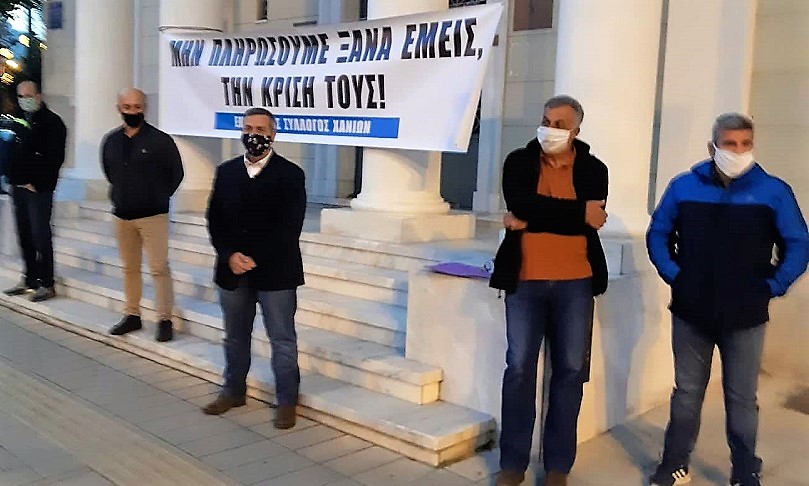 Σε ένδειξη διαμαρτυρίας για τη συνέχιση του ολικού lockdown στο λιανεμπόριο, το ΔΣ του Εμπορικού Συλλόγου Χανίων, προχώρησε το πρωί της Δευτέρας, σε αποκλεισμό του κτηρίου της Τράπεζας της Ελλάδας, στο κέντρο της πόλης.