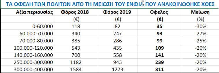 Η μείωση του ΕΝΦΙΑ αφορά όλους τους κατόχους ακινήτων και θα ισχύσει μάλιστα άμεσα από το 2019.