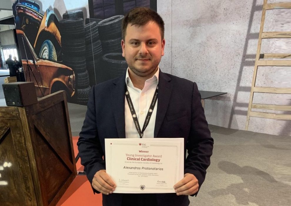 Στο Συνέδριο της ESC 2022, έλαβε το βραβείο Young Investigator in Clinical Cardiology για πρωτότυπη έρευνα και επιστημονική αριστεία για την εργασία του σχετικά με την κληρονομική μυοκαρδιοπάθεια.
