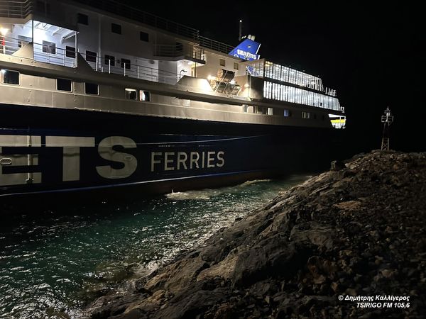 όπως γνωρίζετε, εδώ και λίγες ώρες, το πλοίο Aqua Jewel, έχει προσκρούσει στον προστατευτικό λιμενοβραχίονα του Λιμένος Διακοφτίου Κυθήρων. Στην περιοχή πνέουν ισχυροί δυτικοί άνεμοι, άνω των 8bf. Το πλοίο αποβίβασε ασφαλώς το σύνολο των επιβατών και οχημάτων με προορισμό τα Κύθηρα και το συμβάν έλαβε χώρα κατά τη διάρκεια της αναχώρησής του προς Κίσαμο.