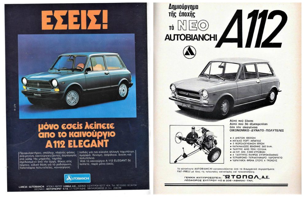 Περιέργως, το 1966 την αντιπροσωπεία ανέλαβε η BMW-Eλλάς Α.Ε., εισαγωγέας των γνωστών γερμανικών αυτοκινήτων, επί της Λ. Συγγρού 226. Ακολούθησε η «ΩΤΟΠΟΛ», με έδρα στη Λ. Συγγρού. Πριν από την παρουσίαση του Α112, η εταιρία διέθετε τα μικροσκοπικά Biachina και τα μεγαλύτερα Primula. Το 1969 το Α112 παρουσιάστηκε στο σαλόνι του TORINO. Είχε έναν κινητήρα με τρία έδρανα βάσης, εκκεντροφόρο στο πλάι και διπλό WEBER.