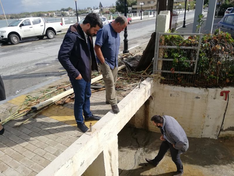 Στη συνέχεια ο κ. Σημανδηράκης μετέβη στο Καλαμάκι, όπου διαπιστώθηκε ανεπάρκεια στην εκροή των υδάτων στο ρέμα που υπάρχει, γι΄ αυτό και ζητήθηκε η άμεση συνδρομή της Περιφέρειας Κρήτης, αρμοδιότητα της οποίας είναι το συγκεκριμένο σημείο, για την αποκατάσταση του προβλήματος.