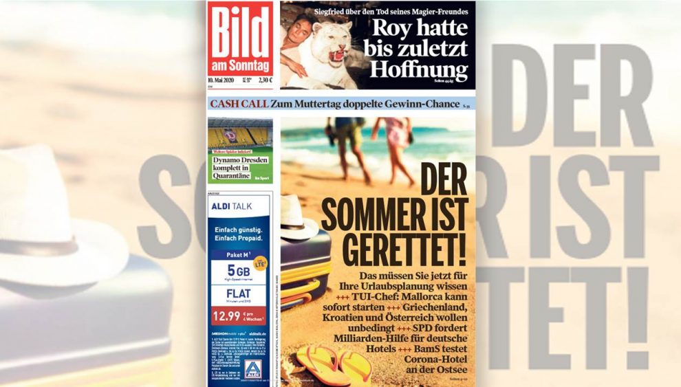 Με πρωτοσέλιδο «Το καλοκαίρι σώθηκε» κυκλοφόρησε η γερμανική Bild που αναφέρεται στο στοίχημα του τουρισμού για τη φετινή χρονιά. «Η Ελλάδα, η Αυστρία και η Κροατία» θέλουν να ξεκινήσουν οπωσδήποτε», αναφέρεται χαρακτηριστικά σε σχέση με τον τουρισμό, ενώ εξηγεί πως κάποιες χώρες μεταξύ των οποίων και η Ελλάδα ευελπιστούν ότι θα σώσουν τη φετινή σεζόν.