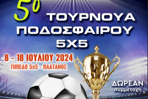 Τουρνουά ποδοσφαίρου 5Χ5 διοργανώνει από 8 έως 18 Ιουλίου στο γήπεδο Πλατάνου ο Δημιουργικός – Εξωραϊστικός Σύλλογος κατοίκων Πλατάνου «Η Ενότητα».