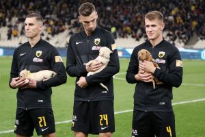 Οκτώ ποδοσφαιριστές της ΑΕΚ βγήκαν στον αγωνιστικό χώρο του γηπέδου του ΟΑΚΑ πριν το ματς με τον Ατρόμητο με σκυλάκια υιοθεσίας στο πλαίσιο δράσης της...