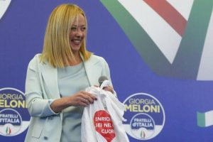 Η Τζόρτζια Μελόνι, η μεταφασιστική παράταξη Αδέλφια της Ιταλίας της οποίας αναδείχθηκε πρώτο κόμμα στις βουλευτικές εκλογές οι οποίες διεξήχθησαν χθες Κυριακή...