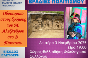 Ο Φιλολογικός Σύλλογος Κισάμου «Κισαμικός», συνεχίζοντας τις Βραδιές Πολιτισμού με προβολές και συζητήσεις για ενηλίκους πάνω σε διάφορα θέματα που έχουν σχέση...