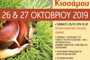 Ο Δήμος Κισσάμου, η Αναπτυξιακή Εταιρεία Εννιά Χωριών , ο Πολιτιστικός Σύλλογος «Η Αναγέννηση» και η Τοπική Κοινότητα Έλους , διοργανώνουν στις 26-27 Οκτωβρίου...