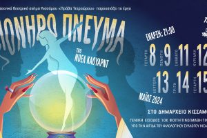 Το ερασιτεχνικό θεατρικό σχήμα «Πρόβα Τετραώρου» που τελεί υπό την αιγίδα του Φιλολογικού Συλλόγου Κισάμου, παρουσιάζει την κωμωδία «Πονηρό Πνεύμα» του Νόελ...