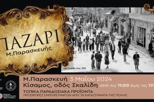 Ο Δήμος Κισσάμου και ο Νέος Εμπορικός Σύλλογος Κισσάμου σας προσκαλούν να επισκεφτείτε την πόλη μας,, στο Παζάρι της Μεγάλης Παρασκευής στις 3 Μαΐου που θα...