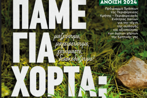 Έφτασε η άνοιξη… Πάμε για χόρτα; Πρόγραμμα δράσεων για τη διάδοση της τέχνης της συλλογής και αξιοποίησης των άγριων χόρτων της κρητικής γης, την άνοιξη του...