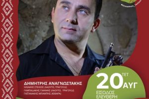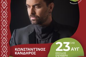 Σάββατο 23 Αυγούστου (9 μ.μ.) Συναυλία με έντεχνο και λαϊκό τραγούδι με τον Κωνσταντίνο Κανδήρο, στα πλαίσια του «Κίσαμος – Φεστιβάλ Γεύσεων &...
