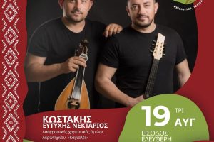 Τετάρτη 27 Αυγούστου (9 μ.μ.) Πανηγύρι του Αγίου Φανουρίου στα Περβόλια Ιναχωρίου. Κρητική βραδιά με τους Γιάννη και Κωστή Καρτσωνάκη. Διοργάνωση: Πολιτιστικός...