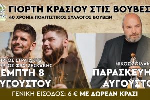 Διήμερο, παραδοσιακό γλέντι, γεμάτο κέφι, χορό, φαγητό και κρασί στη Γιορτή Κρασιού 2024 στις Βούβες του δήμου Πλατανιά Την Πέμπτη 8 Αυγούστου κρητικό...