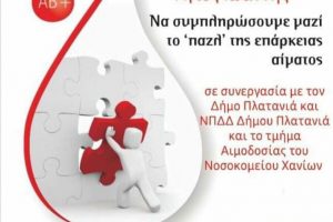 Ο Δήμος Πλατανιά, το ΝΠΔΔ Δήμου Πλατανιά, ο Σύλλογος Εθελοντών Αιμοδοτών Νομού Χανίων ο “Άγιος Ιωάννης” και το Τμήμα Αιμοδοσίας του Γ. Νοσοκομείου Χανίων ο...