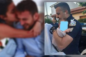 Ένα συγκινητικό στιγμιότυπο με τον αστυνομικό της Άμεσης Δράσης να κρατάει στην αγκαλιά του το μόλις 11 μηνών βρέφος της άτυχης Καρολάιν στα Γλυκά Νερά...