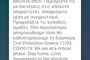 Το μήνυμα της Γενικής Γραμματείας Προστασίας του Πολίτη σχετικά με τον Κορωνοϊό που απεστάλη πριν από λίγο σε χιλιάδες κινητά: