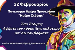 Κάθε χρόνο στις 22 Φεβρουαρίου γιορτάζει η μεγαλύτερη κίνηση για νέους σε όλο τον κόσμο: η Προσκοπική Κίνηση! Περισσότερα από 50.000.000 μέλη σε 220 χώρες σε...