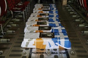 Σε κλίμα βαθιάς συγκίνησης η τελετή επαναπατρισμού των λειψάνων οκτώ Ελλήνων οπλιτών πεσόντων κατά την τουρκική εισβολή από την Κύπρο στην αεροπορική βάση...