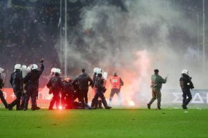 Στον ακρωτηριασμό του ενός ποδιού του 31χρονου αστυνομικού ο οποίος τραυματίστηκε από τη ναυτική φωτοβολίδα των χούλιγκαν κατά τη διάρκεια των επεισοδίων στου...