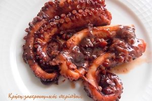 Υλικά: 1,5 κιλό χταπόδι, 1 ποτηράκι του κρασιού λάδι, 3 κρεμμύδια ξερά τριμμένα, 1 κιλό ντομάτες ξεφλουδισμένες και χοντροκομμένες, 1 ποτήρι του νερού άσπρο...